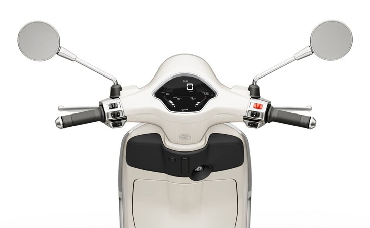 • Modernes Cockpit: Ein komplett neues Instrumentendesign kombiniert den klassischen Vespa-Look mit Full-LCD-Technologie, wobei alle Funktionen digital dargestellt werden.